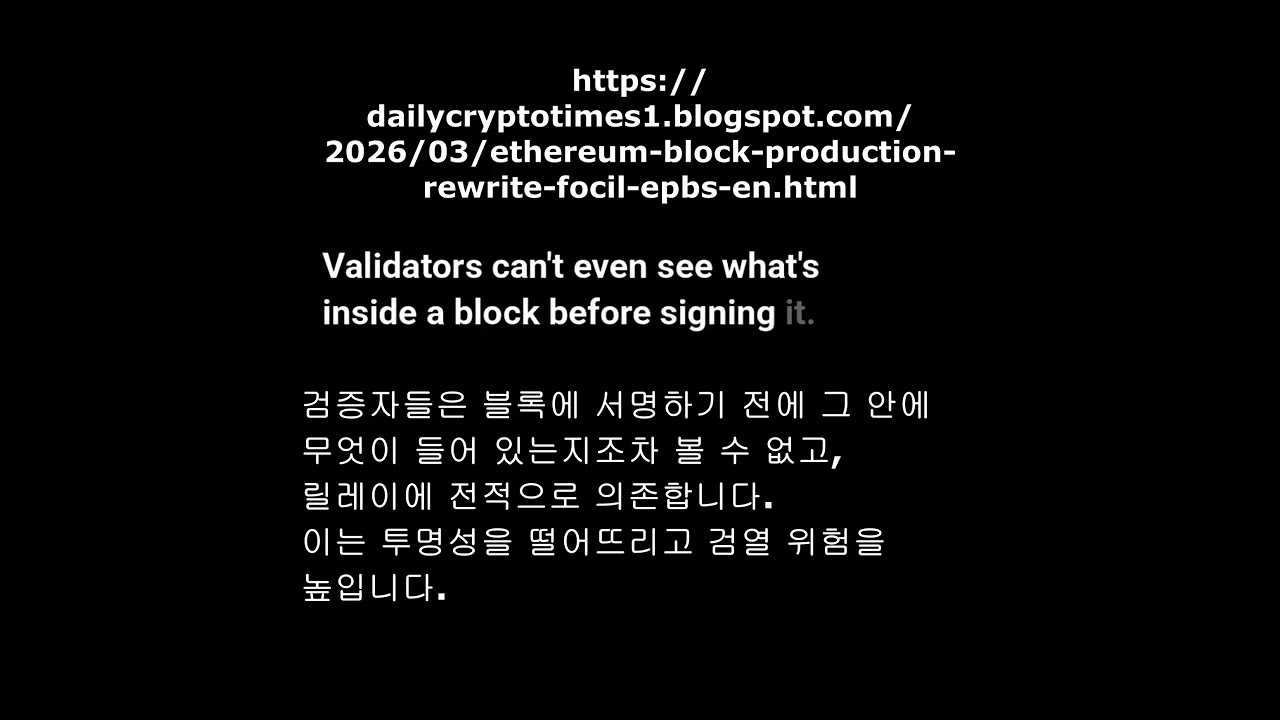- 이더리움은 Focil과 ePBS를 통해 중앙화·검열·병목 문제를 근본적으로 해결하기 위해 블록 생산 파이프라인을 재설계하고 있다.