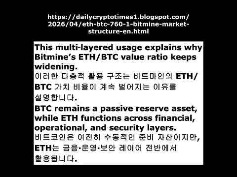 ETH/BTC Ratio 760:1 — The New Market Structure Shaped by Bitmine