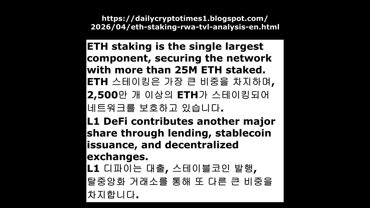 이 글에서는 이러한 TVL의 개념을 바탕으로, 이더리움 TVL 310B가 스테이킹·L1·L2·RWA·DeFi에서 어떻게 구성되어 있는지를 체계적으로 정리합니다.