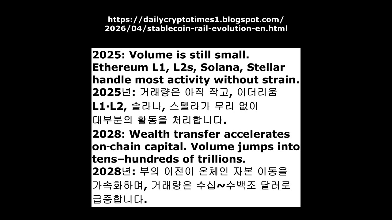 이 글에서는 2025년부터 2035년까지 스테이블코인 거래량과 블록체인 레일의 진화를 함께 살펴봅니다.